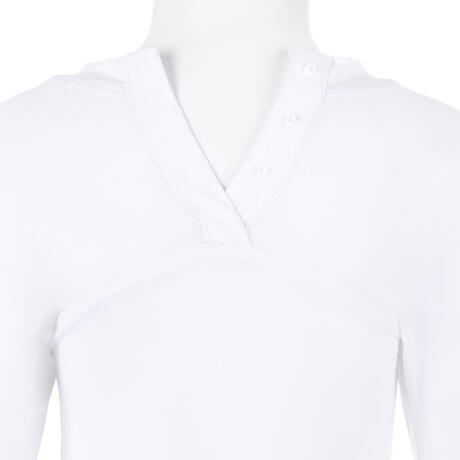 Young children have a head size that is proportionately larger than that of adults. To make it easier when getting dressed, this UV-resistant top has press studs at the back of the collar.