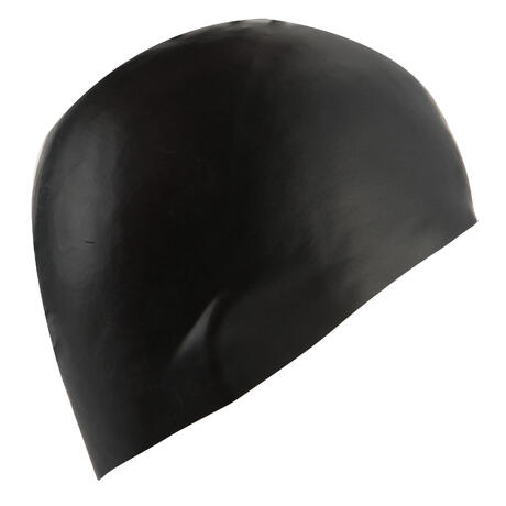 Highly extensible and stretch-resistant silicone swim cap, but that does not withstand the slightest snag. Therefore, it is advisable to take great care with fingernails and hairclips when putting on the cap.