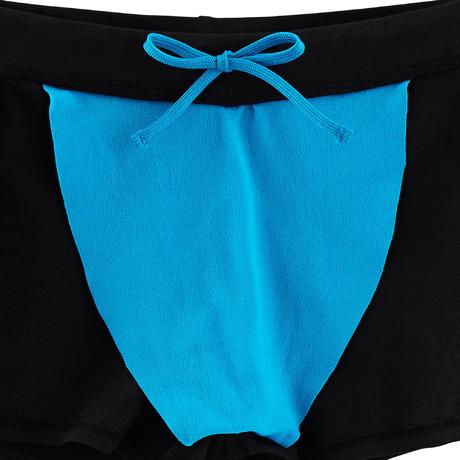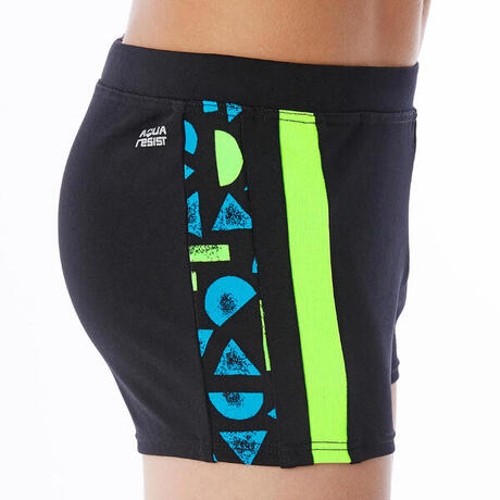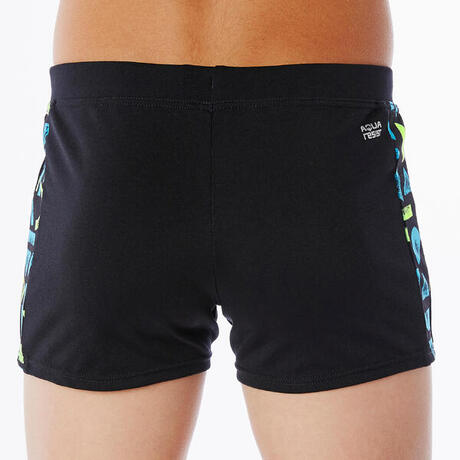 Boy's boxer-style swim shorts that are stylish out of the water too thanks to their wide waistband and outer drawstring, very comfortable and soft.