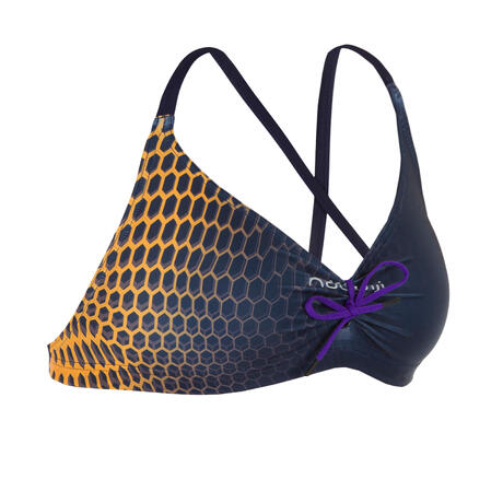 A feminine crop top for competitive swimming that is very chlorine-resistant and offers a firm hold during practice. Adjustable to your size using the drawstring that limits water ingress.