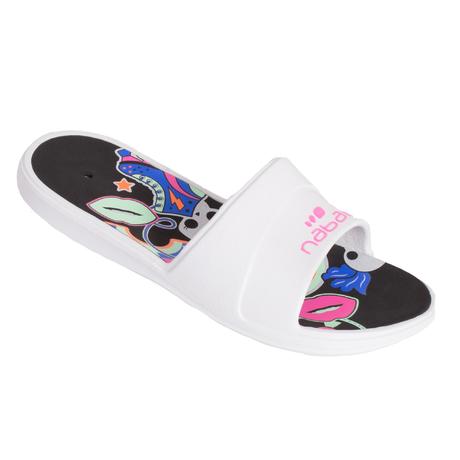 GIRL'S SLAP 500 POOL SANDALS WHITE BLACK
