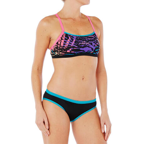 Swimsuit briefs specially designed for swimming activities. With its flat elastic waist band and drawstring, it ensures support and hold during your swimming sessions, whatever your level.