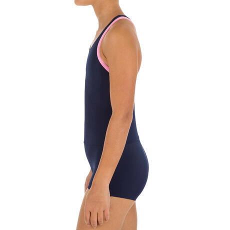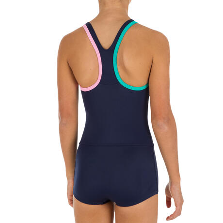 With its shorty style, this girls’ swimsuit designed for swimming combines coverage and freedom of movement.