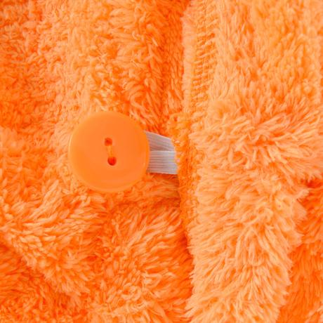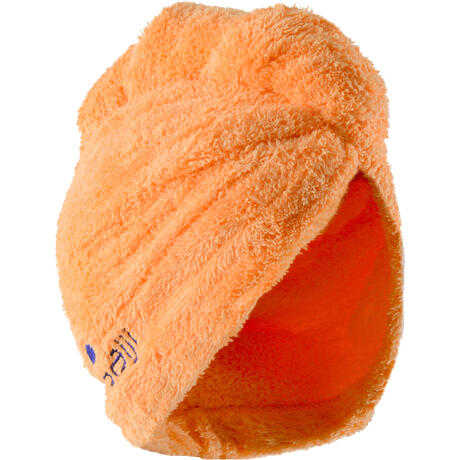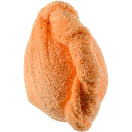 Soft microfibre towel specially designed to gently dry hair. Its shape perfectly wraps around the hair and holds it firmly in place with its button fastener.