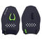 The patented and exclusive QUICK'IN system was designed and developed to make hand paddles easier to put on. It consists of a polypropylene wing and a piece of silicone attached under the surface of the paddles.