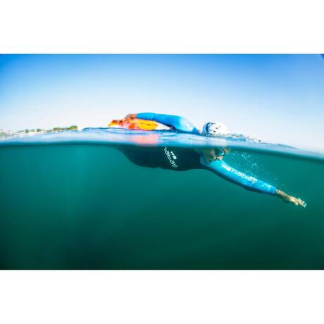 Open water swimming wetsuit with 2.5 mm neoprene on the chest and legs for thermal comfort, and 2 mm on the arms and shoulders for excellent freedom of movement.